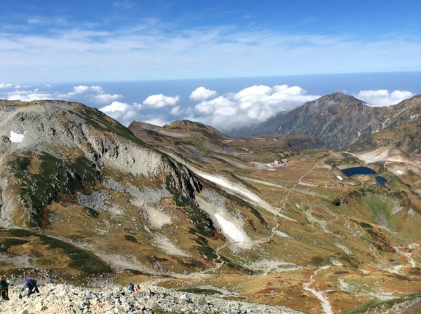 予定を変更し初日は弥陀ヶ原から室堂までの木道ハイキングにしました。それでも3時間ほど掛かり、到着した室堂の山小屋での生ビールの味を格別なものにしました。更に山小屋とは思えないレベルの夕食と標高2400mの絶景温泉!運よく個室が取れたのでふかふかの布団でゆっくりと休めました。