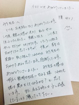 ◎ALTの先生の会話内容が理解できることが多くなったり、先生との会話テストでもいい点をとることができました。いつもの授業でも発音よく練習をすることができています。リスニングのテストや問題でも、しっかり聞けて分るようになったのでよかったです。スペルなどケアレスミスも最近では前よりなくなり点を落とさなくなってきました。
